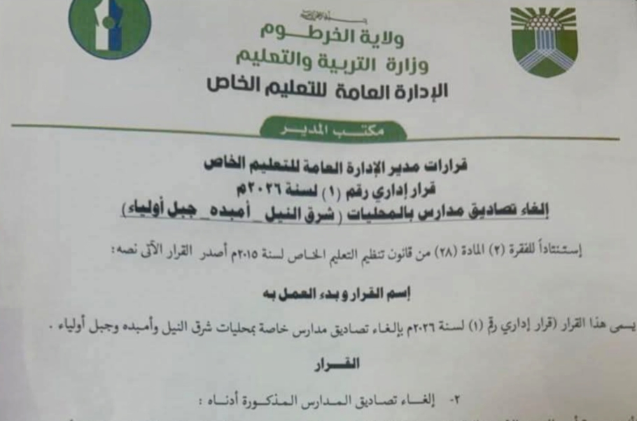 وزارة التربية تلغي تصاريح مدارس بتهمة التعاون مع الدعم السريع