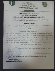 ألغت وزارة التربية ولاية الخرطوم تصاديق مدارس في الولاية بزعم أن مؤسسيها متعاونين مع الدعم السريع  وأكد القرار الصادر من الإدارة العامة للتعليم الخاص على إلغاء تصاديق مدارس في محلية شرق النيل وأميدة وجبل أولياء بسبب أن مؤسسي المدارس متعاونين مع قوات الدعم السريع واستند القرار على الفقرة (٢) من المادة (٢٨) من قانون تنظيم العمل الخاص ووجهت الوزارة إدارات التعليم بالمحليات بالإشراف على المدارس المذكورة في القرار إلى حين انتهاء العام الدراسي (٢٠٢٤-٢٠٢٥)