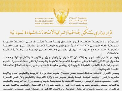 تأسيس : تشكل لجنة عليا للإشراف على امتحانات الشهادة السودانية
